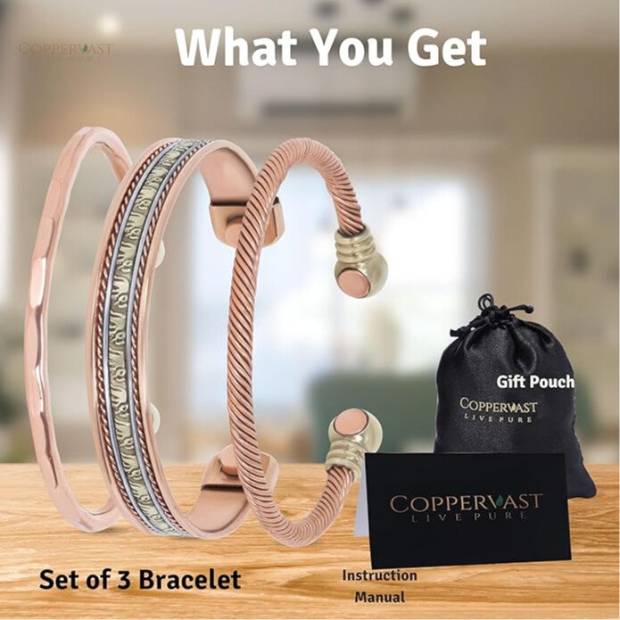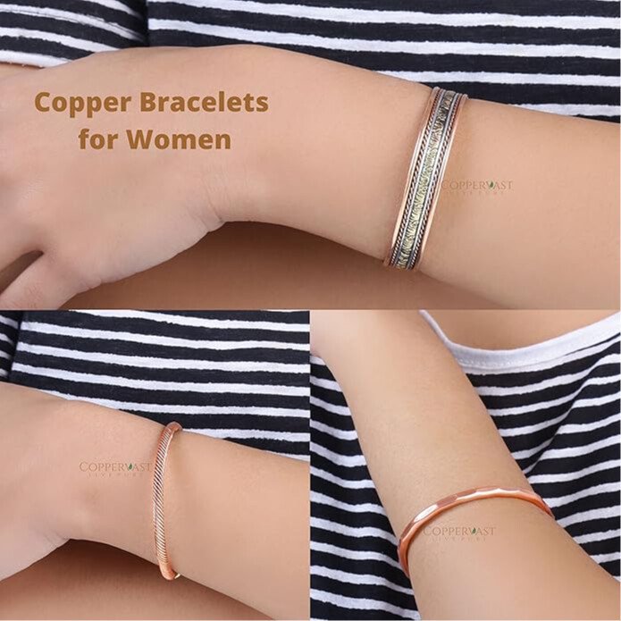 كيفية تنظيف سوار النحاسمن الطبيعي أن يتغير لون النحاس ويترك رواسب خضراء على الجلد. يحدث هذا عندما يتفاعل النحاس مع الماء أو الهواء، في عملية تُسمى الأكسدة، وهي عملية طبيعية. يمكن إزالة الرواسب الخضراء بسهولة بالماء والصابون.نصائح لتنظيف سوار النحاس:انقع السوار في مزيج من الماء وعصير الليمون أو الخل. اشطفه بالماء الدافئ وجففه جيدًا بقطعة قماش ناعمة.ضع كاتشب الطماطم على السوار واشطفه بالماء الدافئ وجففه جيدًا بقطعة قماش ناعمة.تصميمٌ مُفصّلٌ بدقّةبالنظر إلى الفوائد المذكورة أعلاه، يُنصح بارتداء النحاس كسوارٍ والبدء بجني فوائده، كما فعلت الحضارات القديمة. علاوةً على ذلك، فهو عصريّ، ولا يتداخل مع الإكسسوارات الأخرى كالأساور والساعات وغيرها. لهذا السبب، تُصنع أساور CopperVast يدويًا على يد حرفيين ذوي خبرة، وتُنحت وفقًا لتصميم عصريّ للغاية يُناسبكم. كل سوار من أساور CopperVast مصنوع من النحاس الخالص والمغناطيس ليمنحكِ كامل فوائد السوار المغناطيسي.