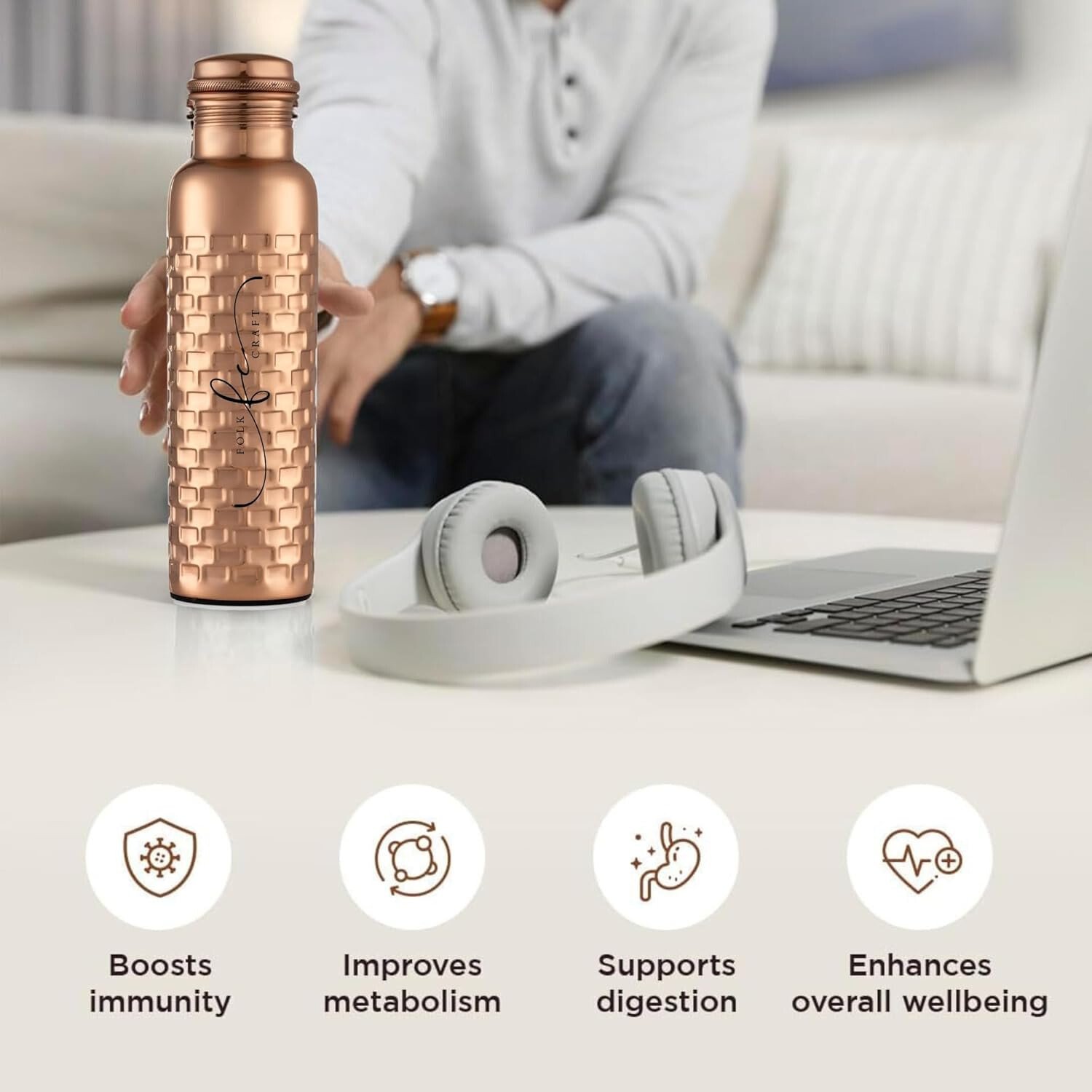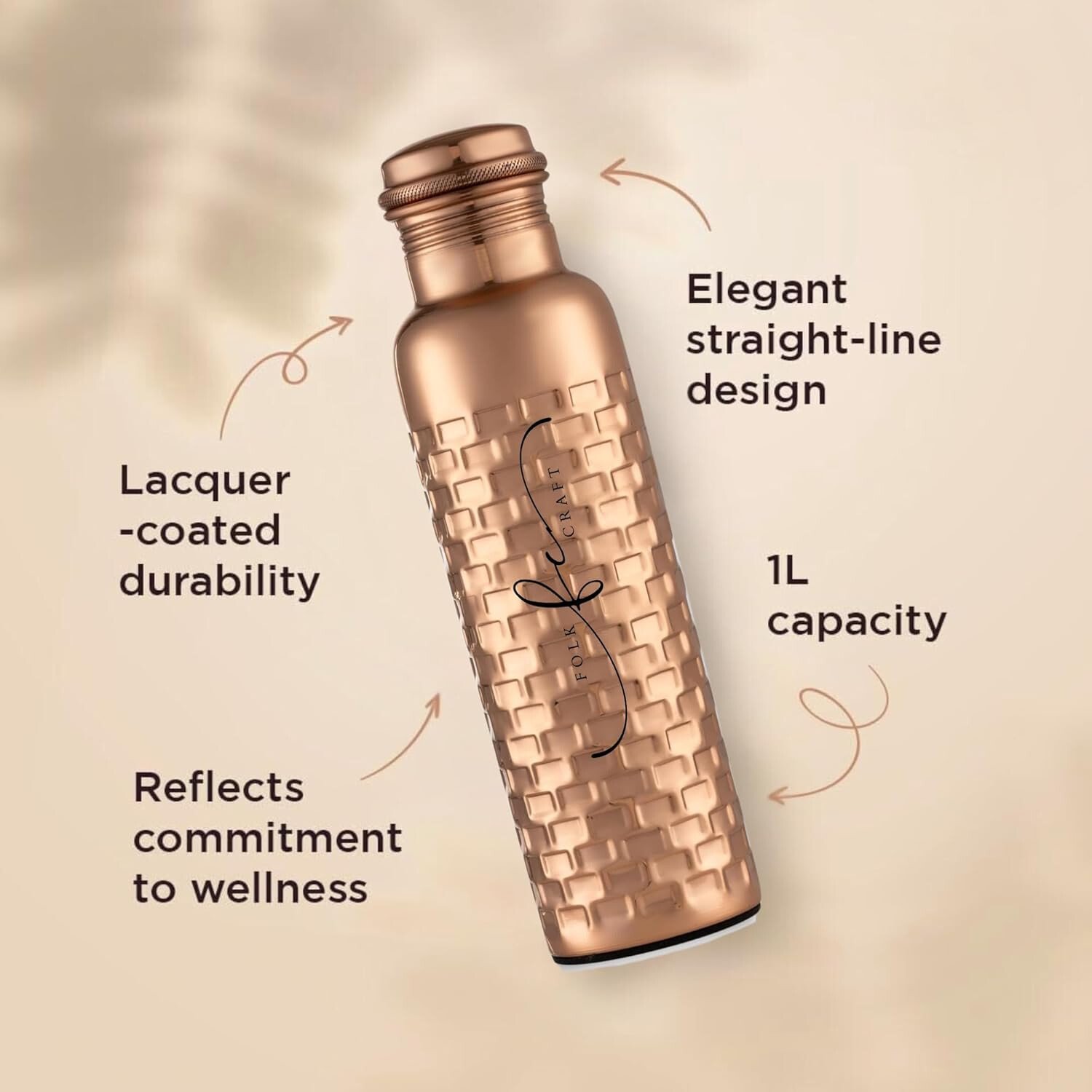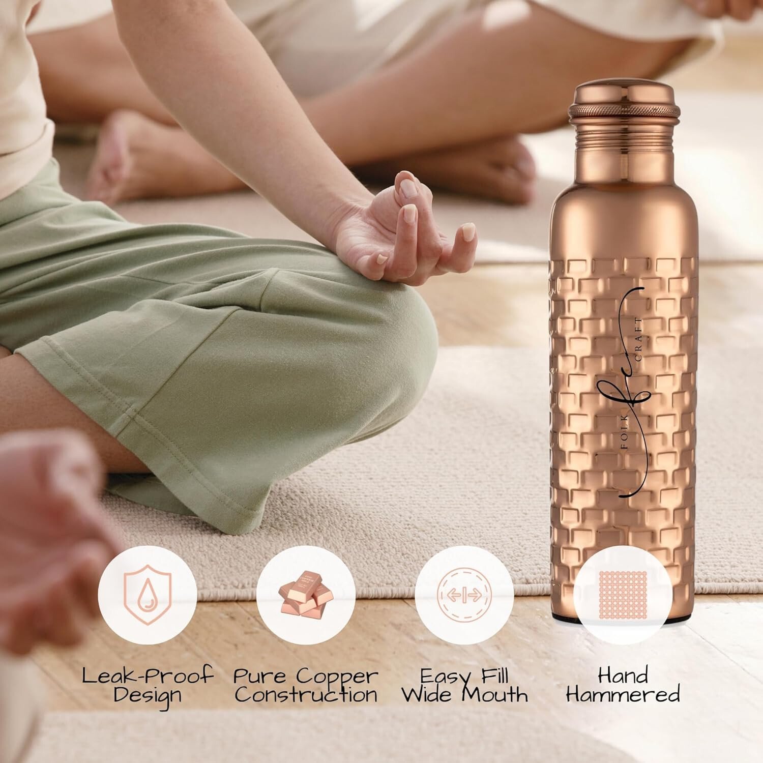 زجاجة مياه من النحاس النقي - 32 اونصة - زجاجات معدنية متينة مصنوعة يدويا خالية من البيسفينول ايه وغير معزولة ومضادة للتسرب للرياضة والسفر
